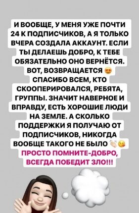 Александра Черно: Добро всегда победит зло! Общество Опубликовано Авг 14, 2021 3 0 Александра Черно благодарна подписчикам за поддержку.