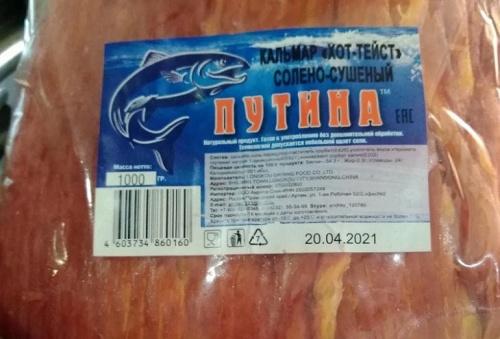 Сразу две недопустимые пищевые добавки обнаружили в кальмаре «ХОТ-ТЕЙСТ» солено-сушенный «Путина».